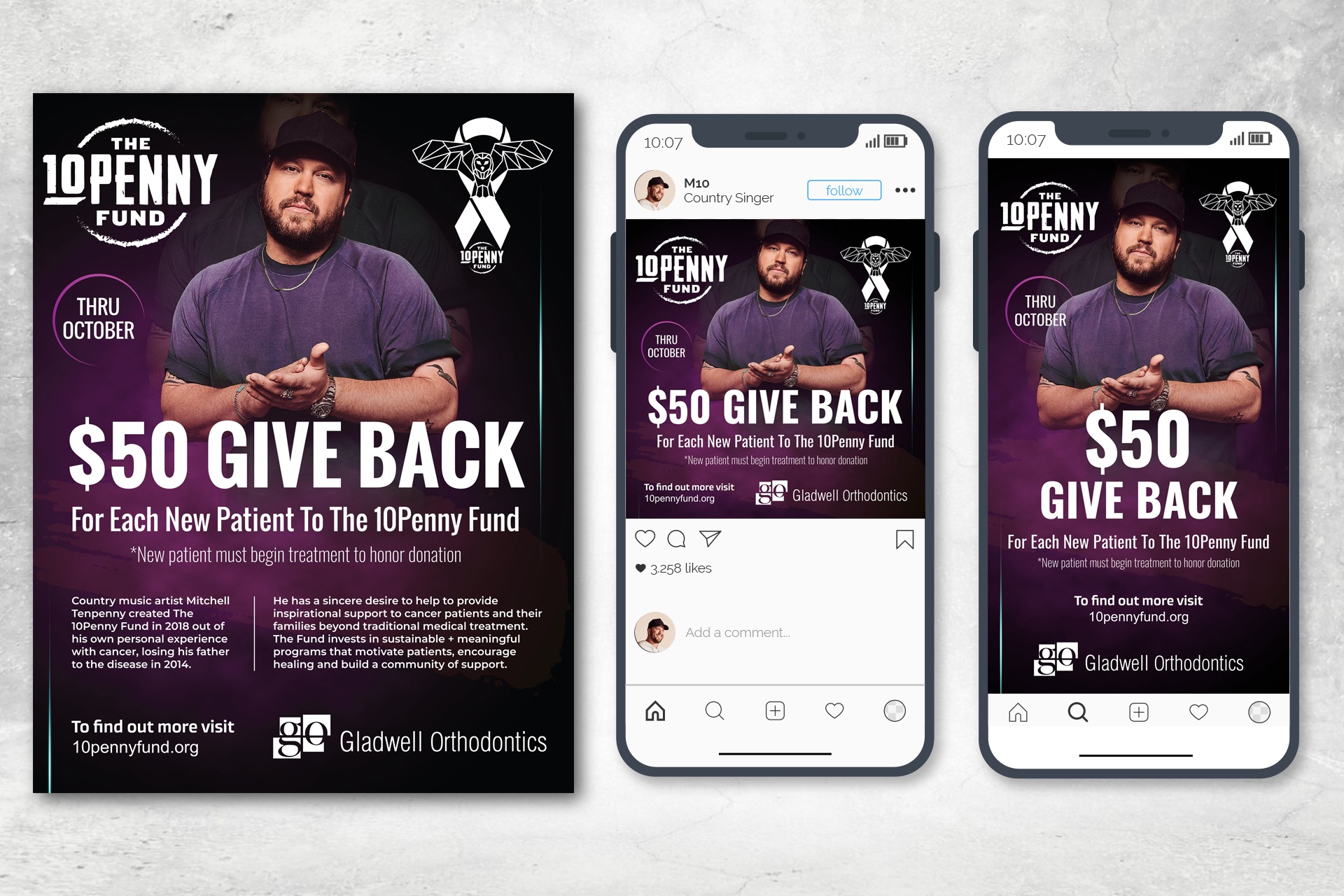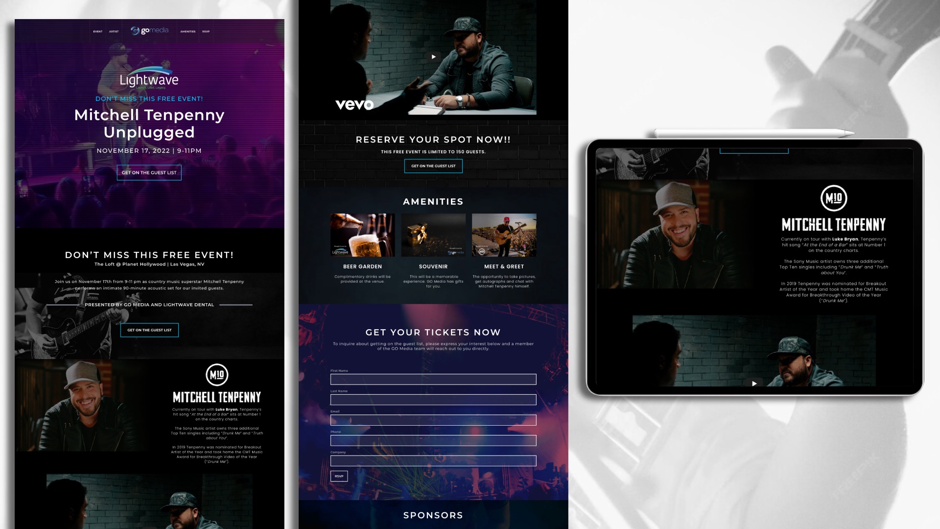 Mitchell Tenpenny is an American country singer and songwriter from Tennessee. In 2022, he performed in Las Vegas. I designed the event’s landing page, signage, and video brochure. Following the concert, he held a charity event in which I designed the promo flyers and social media.