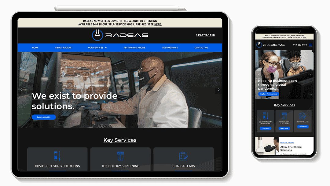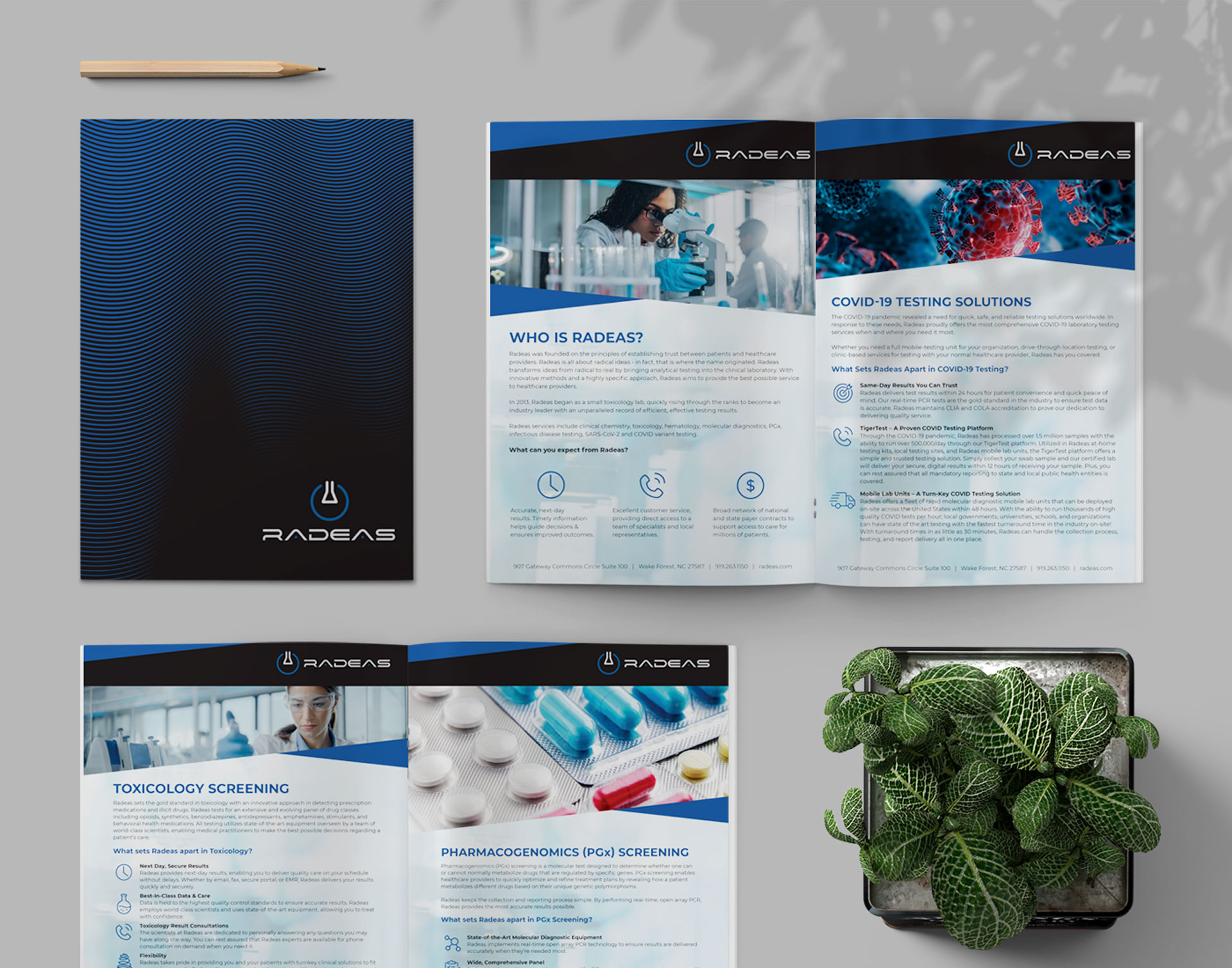 Radeas is a clinical laboratory offering a wide array of clinical solutions nationwide. After the pandemic, they decided to do a rebranding. I designed their website, video, packaging, sales sheet, banner, instructional flyer and booklet.