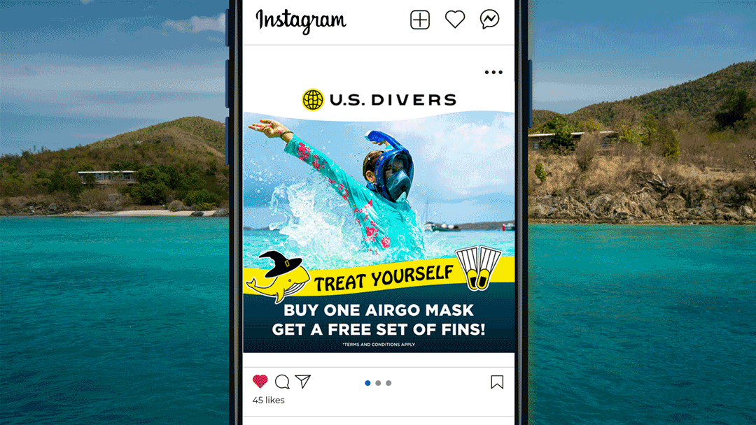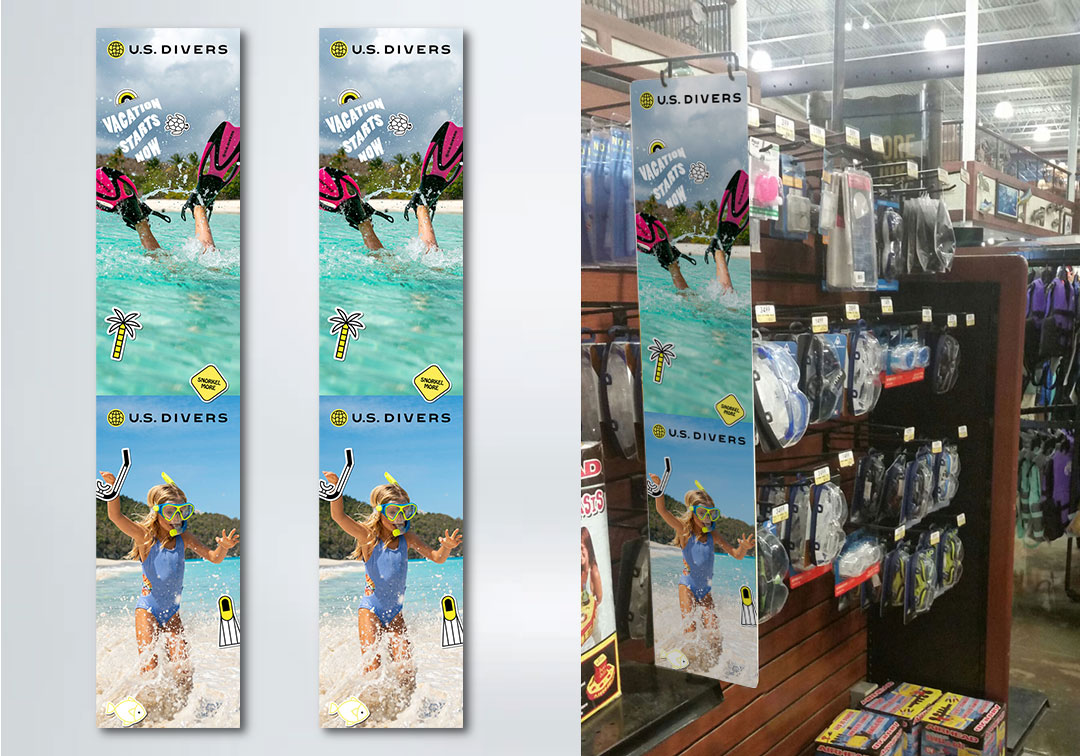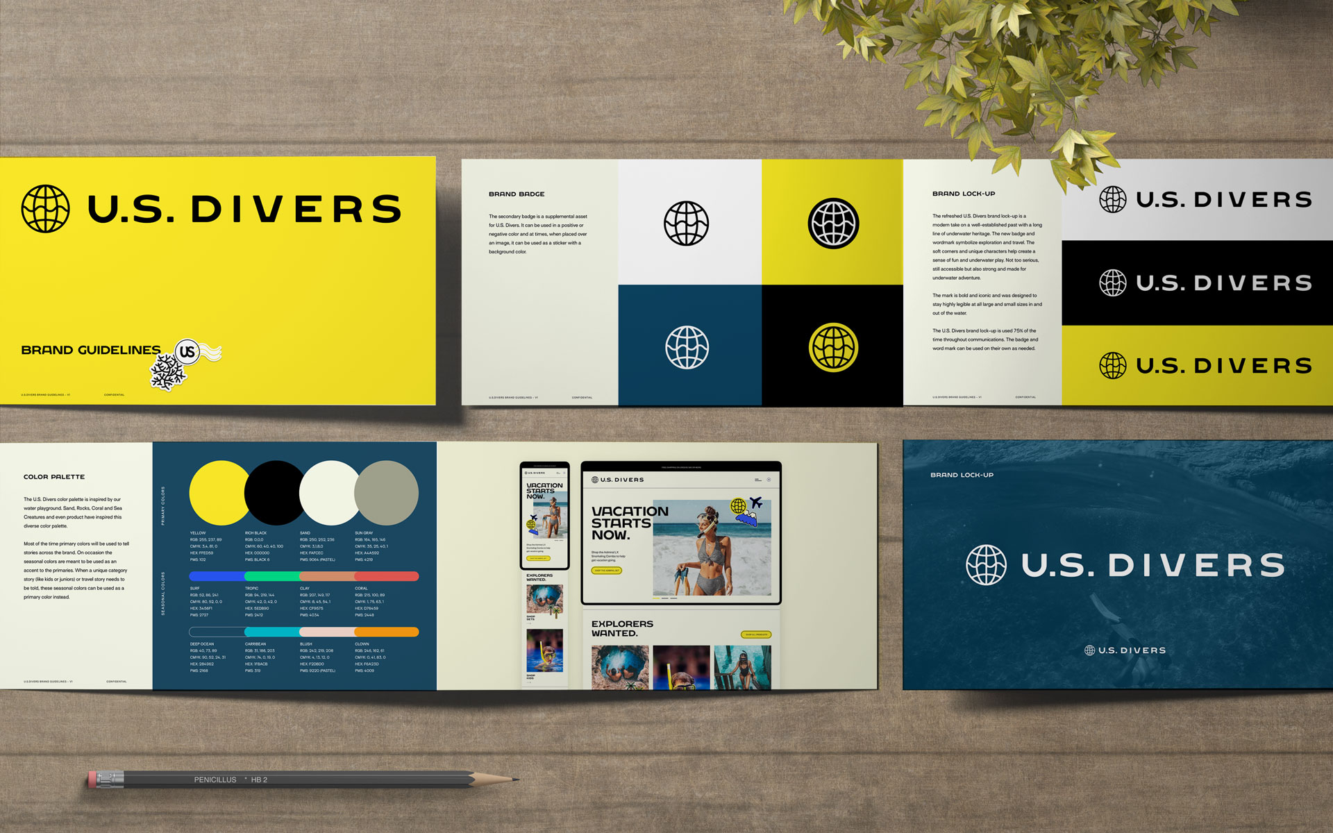 US Divers is a snorkeling brand. I designed the branding which includes logo, packaging, brand identity, product booklet, website, and social media. I also created product images, feature and benefits for Amazon and Walmart online stores.